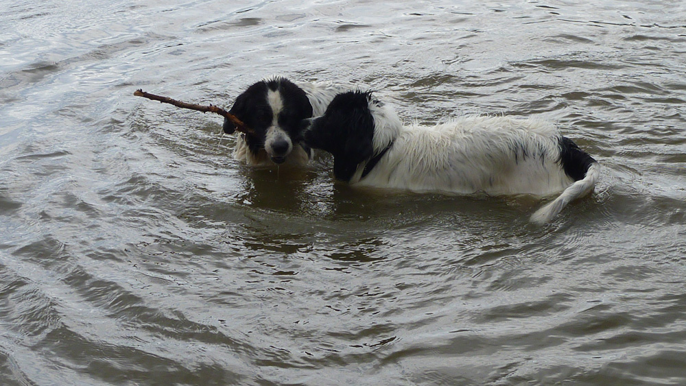 Stöckchenkämpfchen mit Fredi interessiert als am Schwimmen!