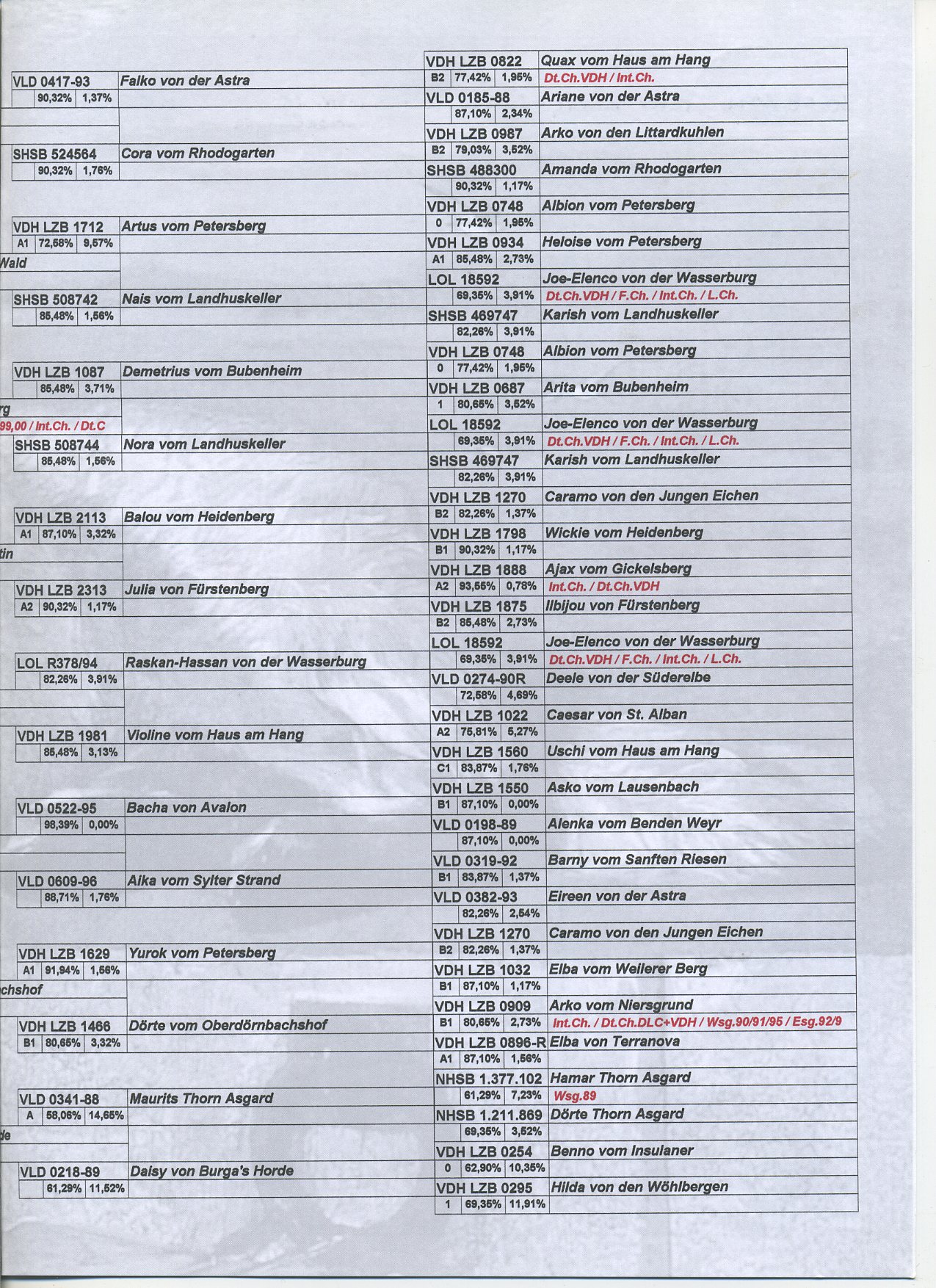 beiden Ahnentafeln (Hündin-Rüde) (5 Genera-tionen